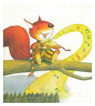 小松鼠说:“这些果子,都可以做提琴呢!”