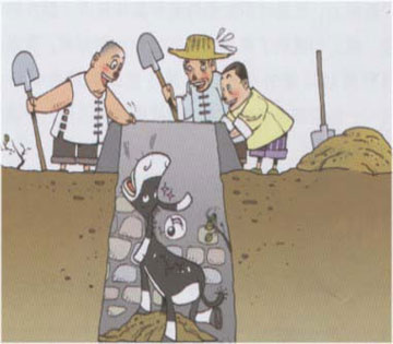 最后,这位农夫决定放弃,他想这头驴子年纪大了,不值得大费周章去把它救出来,不过无论如何,这口井还是得填起来。于是农夫便请来左邻右舍帮忙一起将井中的驴子埋了,以免除它的痛苦。