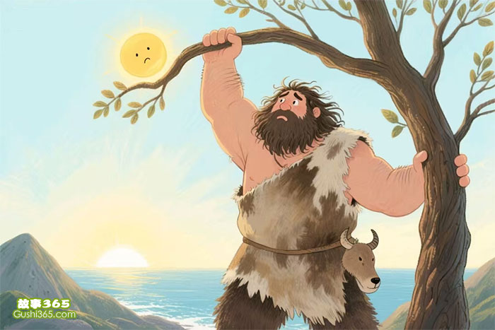 巨人在海水中摸哇淘哇,这哪里能找到呀,太阳早已随着波涛漂向远方啦!