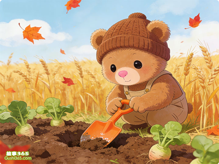小熊很喜欢吃萝卜,可是,用手挖萝卜挖得慢不说,还容易把手弄破了。