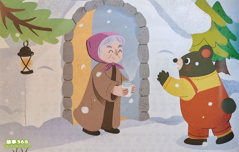 “我这里没有药,只有好梦!”雪婆婆微微一笑,伸手接了几片雪花,放入炉火上的水壶里,然后倒了一杯热腾腾的水,递给大狗熊,“喝一杯热水,回去你准会睡一个好觉!”