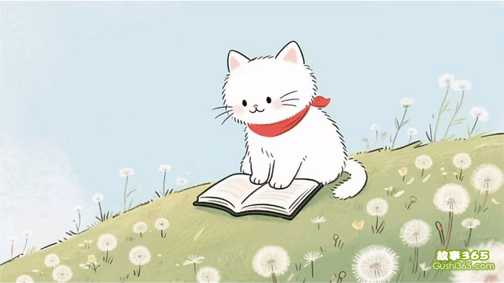 在一个长满了蒲公英的小山坡上,住着一只叫“咪咪”的小猫。咪咪有一身雪白的绒毛,最特别的是它脖子上总系着一条红色的小围巾,那是猫妈妈用旧毛衣改的,暖和又好看。