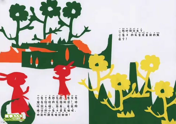 小兔子种花 小兔子来到花园, 看见表姐在给她的花施肥呢! 她恍然大悟, 原来, 老鼠阿姨说的小兔子是表姐呢,她连忙跟表姐说谢谢! 一段时间过去了,小兔子 的花变成美丽的黄色了! 小兔子种花 10/12 首页 上一页 8 9 10 11 12 下一页 尾页 【小兔子种花 - 幼儿故事 - 故事365】妈妈,再见!我今天要出去找一种养花的肥料!好的,你路上要小心喔!小兔子跟妈妈打过招呼独自出门了! 叮叮叮...有人在家吗?小兔子来https://www.gushi365.com/info/18507.html 手机用户点击浏览器底部 ≡ ↗ 或右上角 ┅ 等按钮,收藏或分享到朋友圈 赞 订阅 微信扫一扫,订阅「故事365」