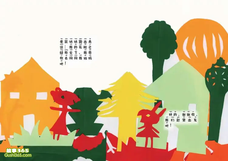 小兔子种花 老鼠爸爸跑出来开门问: 你好呀,小兔子。请问有什么事呢? “我种的花朵, 一直是绿的, 我想问你家老鼠妹妹有没有肥料。”小兔子说明来意。 屋里的老鼠妹妹听到了他们的谈话, 跑出来说:我的花肥已经用完了, 我带你去问问我姑妈吧! 好的,谢谢你,我们赶紧出发吧! 小兔子种花 3/12 首页 上一页 1 2 3 4 5 6 下一页 尾页 【小兔子种花 - 幼儿故事 - 故事365】妈妈,再见!我今天要出去找一种养花的肥料!好的,你路上要小心喔!小兔子跟妈妈打过招呼独自出门了! 叮叮叮...有人在家吗?小兔子来https://www.gushi365.com/info/18507.html 手机用户点击浏览器底部 ≡ ↗ 或右上角 ┅ 等按钮,收藏或分享到朋友圈 赞 订阅 微信扫一扫,订阅「故事365」