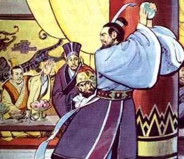 过了五天,秦昭襄王召集大臣们和别国在咸阳的使臣,在朝堂举行接受和氏璧的仪式,叫蔺相如上朝。蔺相如不慌不忙地走上殿去,向秦昭襄王行了礼。