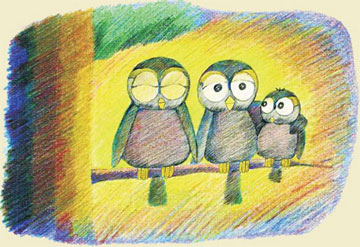 这时,小鸟想起了妈妈,妈妈现在肯定也很冷,我把围巾送给妈妈围吧! 小鸟飞回了家,把围巾送给了妈妈。鸟妈妈高兴极了,直夸小鸟长大了,懂得孝敬妈妈了!