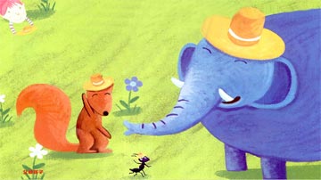 过了一会儿,大象又把太阳帽还给了小松鼠,他说:“给别人戴吧,别人比我更热。”