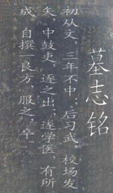 初从文,三年不中;后习武,校场发一矢,中鼓吏,逐之出;遂学医,有所成。自撰一良方,服之,卒。