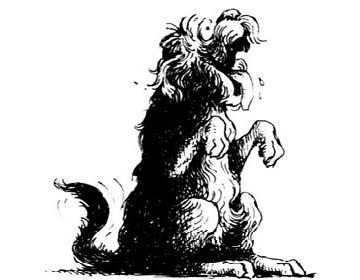 有一次,它叼着满满一口黑毛兴冲冲地跑来,再一次引起公愤:“你叼鸟做什么?讨打啊?”我破口大骂一顿,吓得它虽然东躲西藏,却绝不松口。我抄起木棍猛追,又用泥块连续射击,打得它在林子里乱窜,最后呼啦啦跳上了墙。但它还是死叼着小鸟不放,眼里满是委屈和困惑,对我不赏反罚大为义愤。