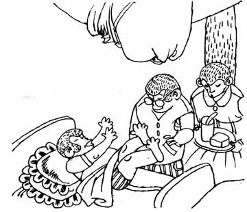 “好孩子,听话,不上学怎么行r”猴爸爸和猴妈妈像两个哨兵一样,站在床的两边,满脸带笑地说。他们对孩子总是这么娇惯。